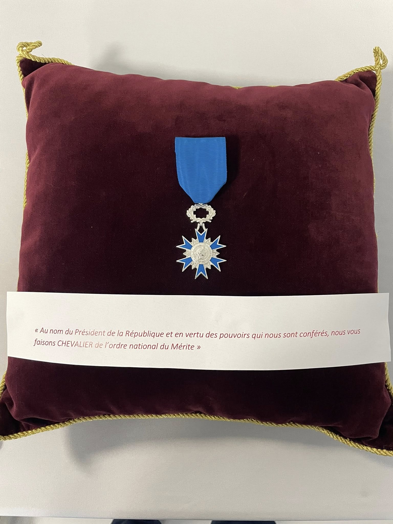 La remise des insignes de Chevalier de l'ordre national du Mérite